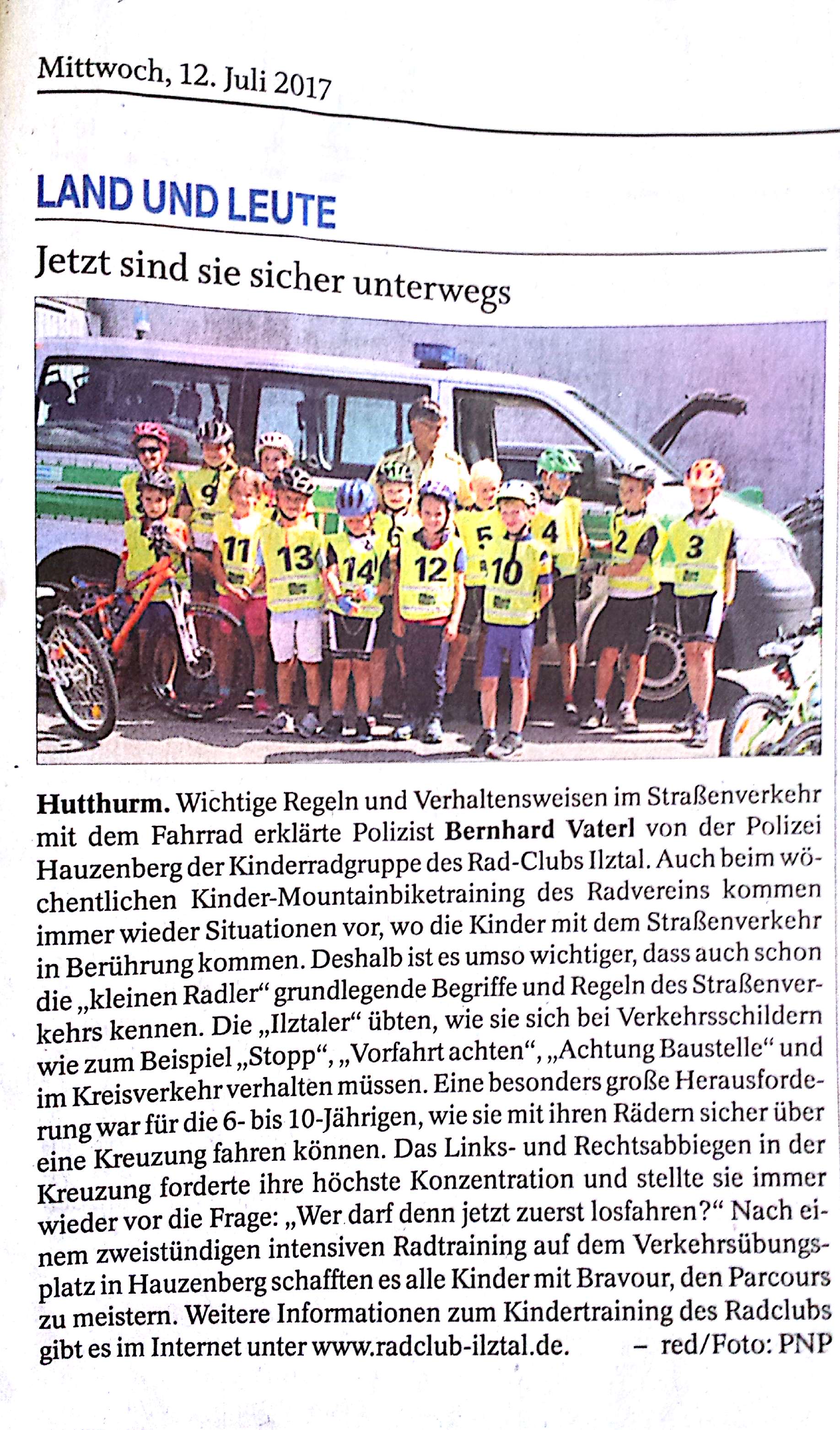 Pressebericht PNP 12.07.2017 Verkehrssicherheitstraining unserer RCI Kids